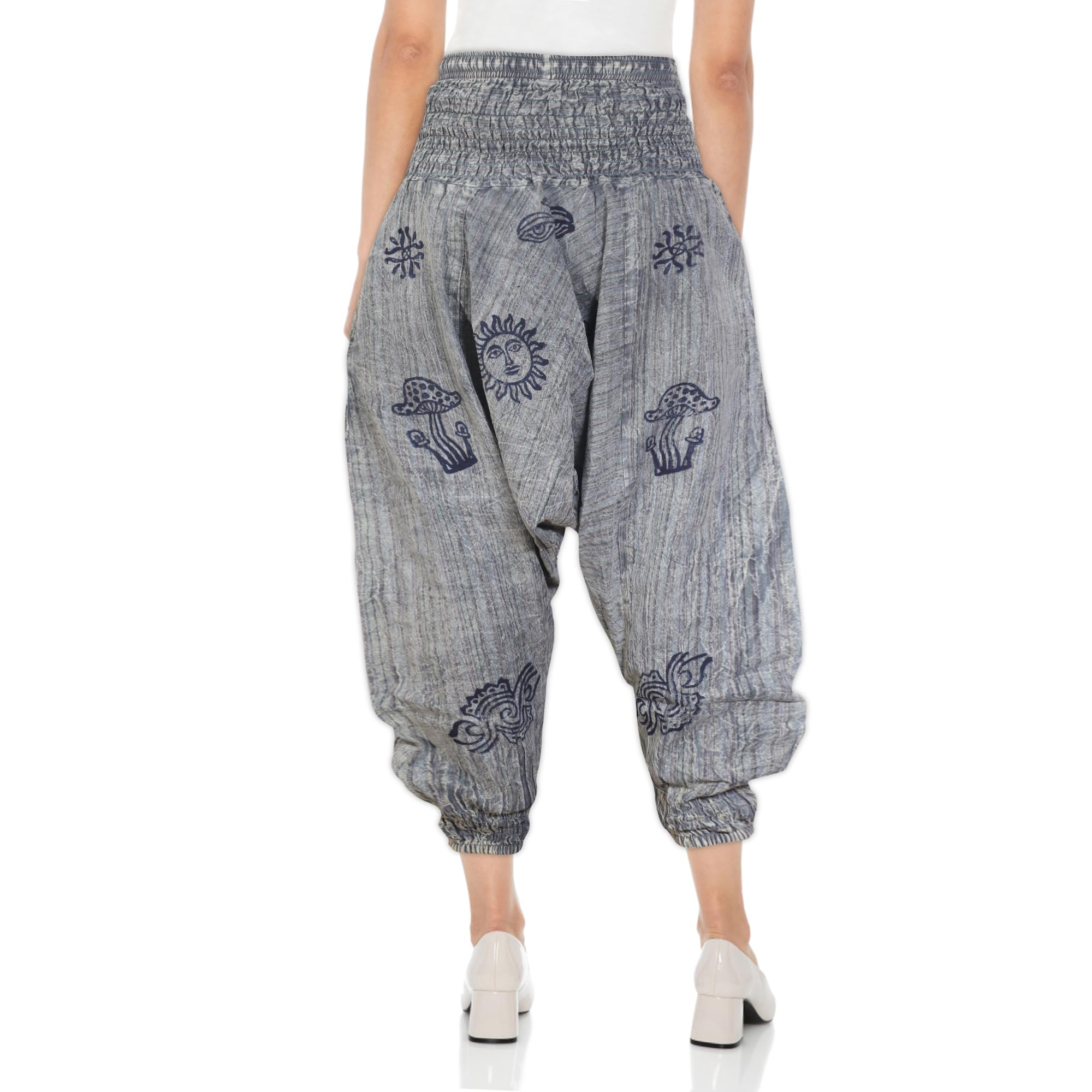 𝐄𝐳𝐡𝐢𝐩𝐩𝐢𝐞 presents Striped Harem Pants, designed to enhance both your style and comfort. Whether you're off to a festival or embarking on a new adventure, these vibrant multicoloured trousers are your ultimate choice for making a statement. Crafted entirely from 100% cotton, hippie harem style pockets trousers promise exceptional comfort, especially during the summer months. The harem design boasts a single spacious leg extending nearly to the ankles, complemented by elasticated bands, ensuring easy passage for your feet. With an elasticated waistband featuring a drawstring closure, achieving the perfect fit is effortless. Additionally, the ankle elastic adds a trendy flair to the design. These yoga-inspired harem pants offer a loose fit, allowing you to experiment with styling - whether as a jumpsuit or by wearing the elasticated waistband around the chest for a uniquely cool appearance.
