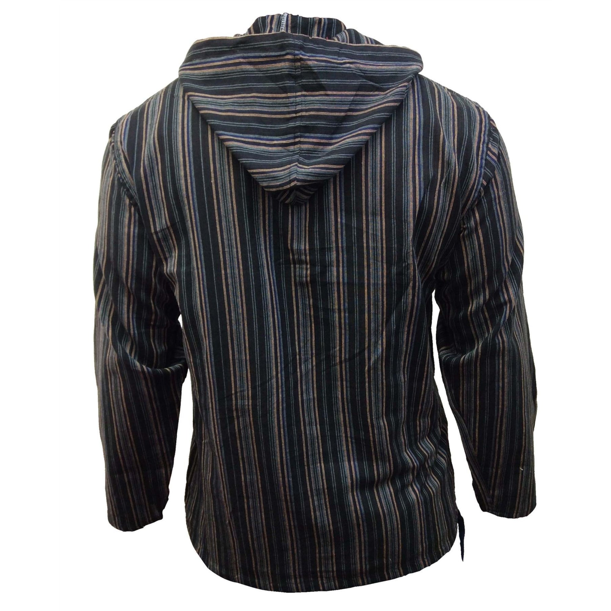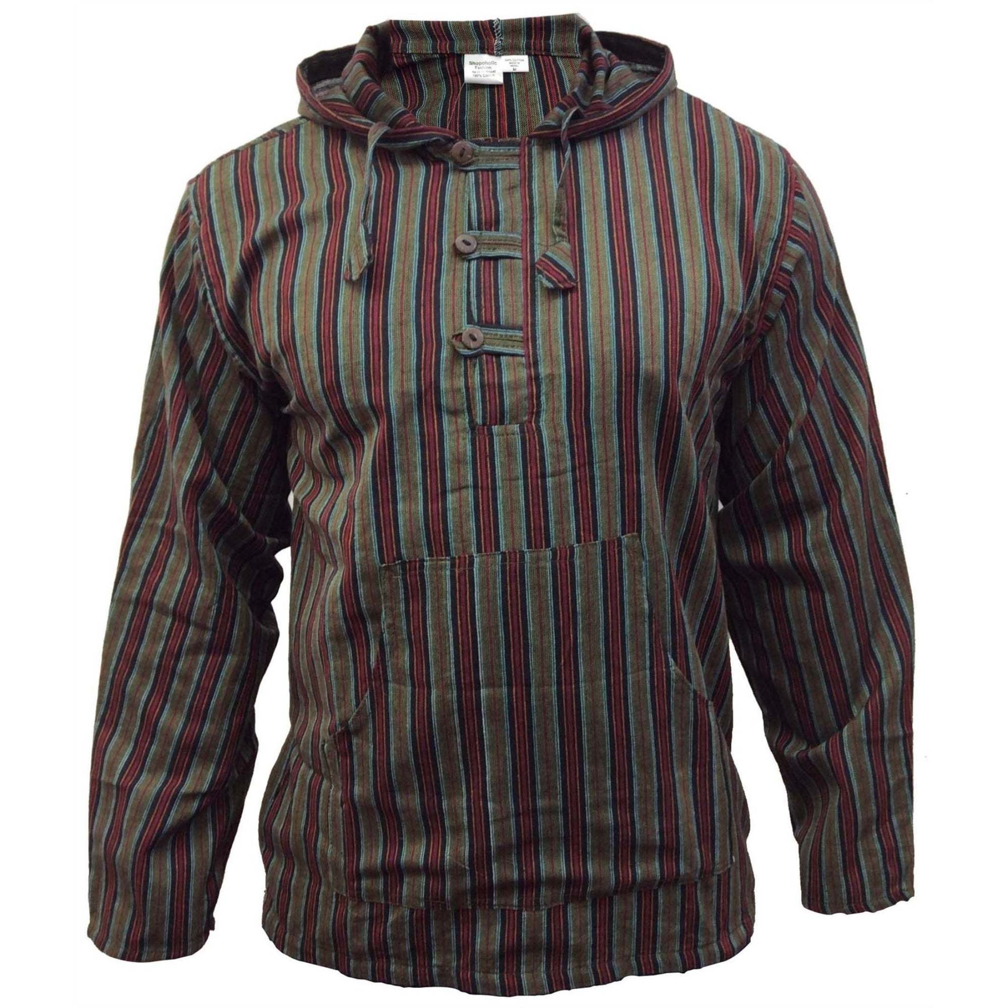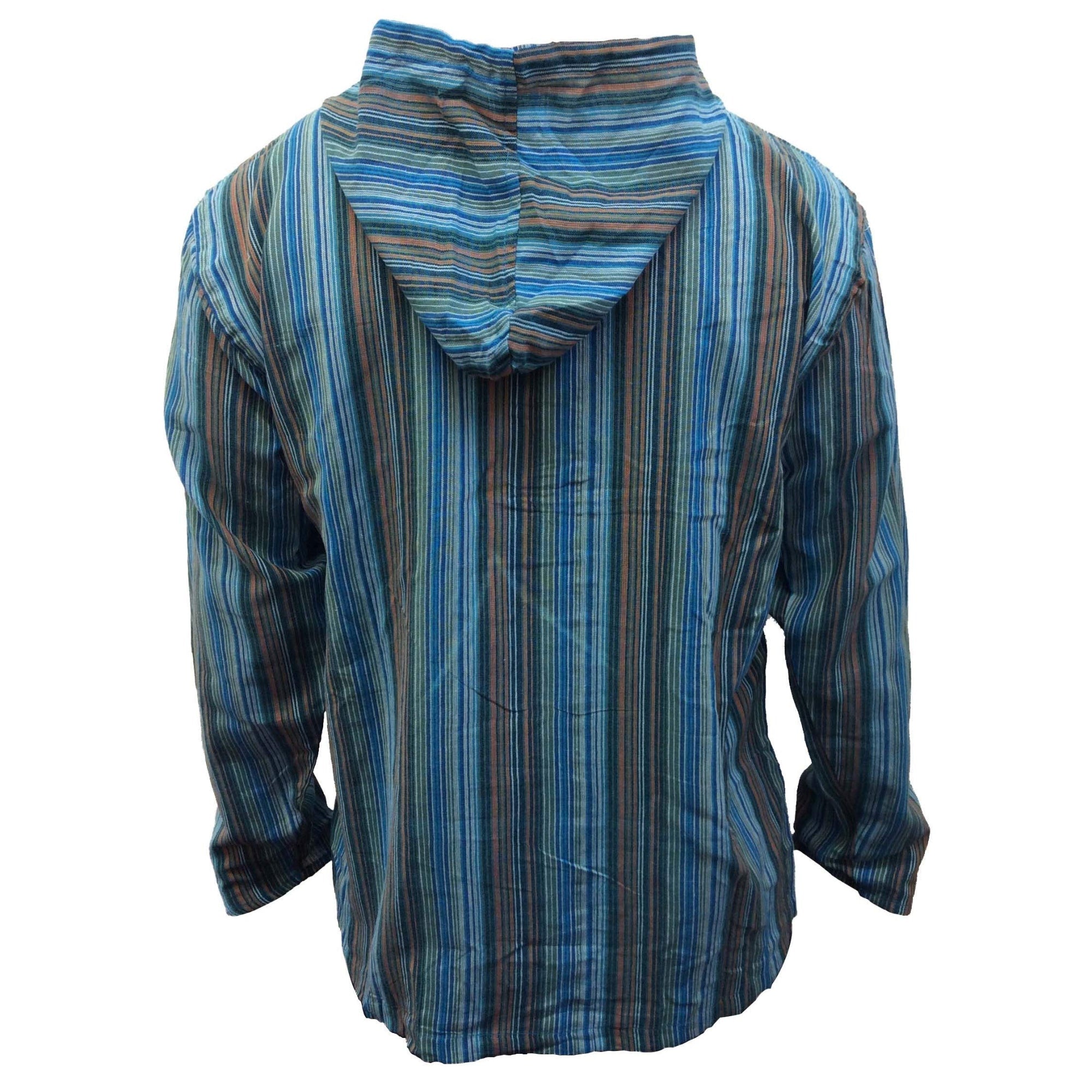 Our Striped Summer Festival Grandad Shirt for Men. Handmade in Nepal from 100% cotton, this lightweight, full-sleeved shirt combines quality and style. The trendy grandad-style neckline, playful stripes, and convenient side pocket make it perfect for festivals, outdoor adventures, or any occasion. The button closure and hoodie neck design ensure easy wear, while the long sleeves offer sun protection. Practical and stylish, this shirt lets you carry small essentials effortlessly, making men’s fashion fun and comfortable.