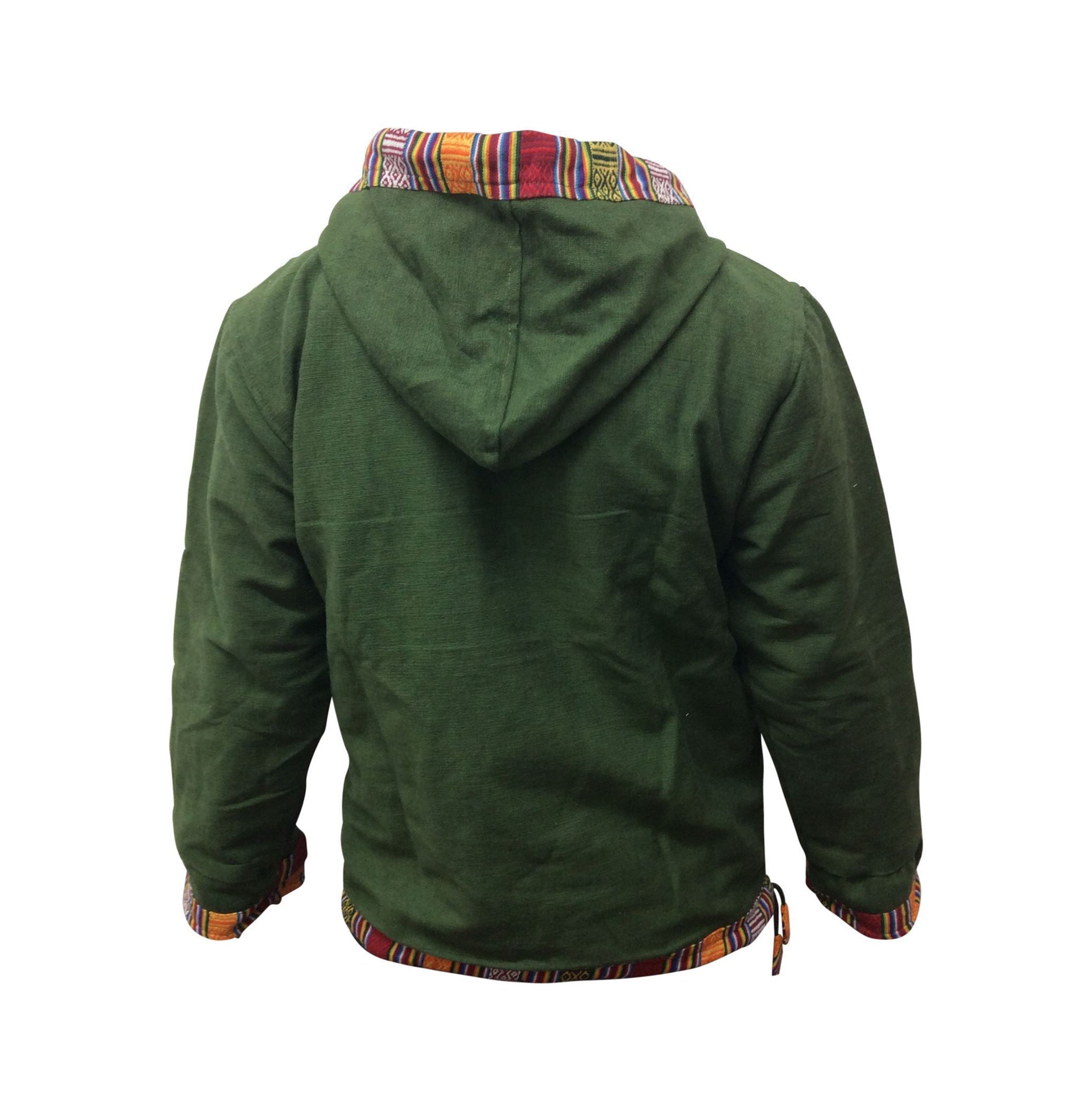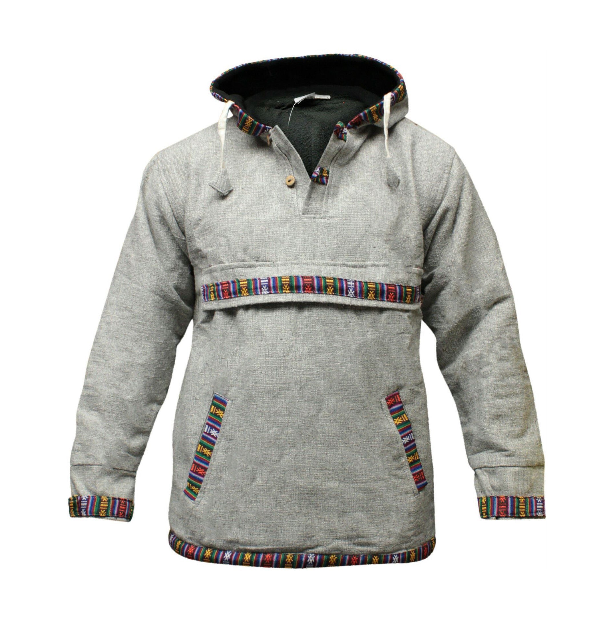 There are two convenient pockets - one on either side - for keeping your hands warm, or for storing money, keys and those other items you need to have within arms’ reach. If you’re looking for a piece of clothing with true versatility, this is a great choice. This is made from 100% fine cotton on the outside and fleece lining inside to make very cozy every time its worn. This jacket has long sleeves, zip closure, adjustable string on the waist and neckline. This style is very versatile, functional and comfortable. All of our products are fair trade.