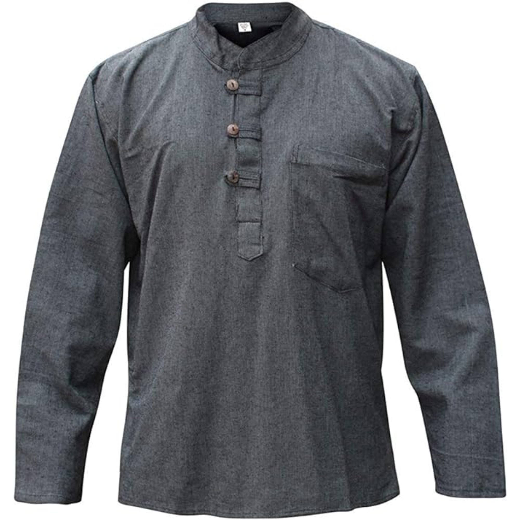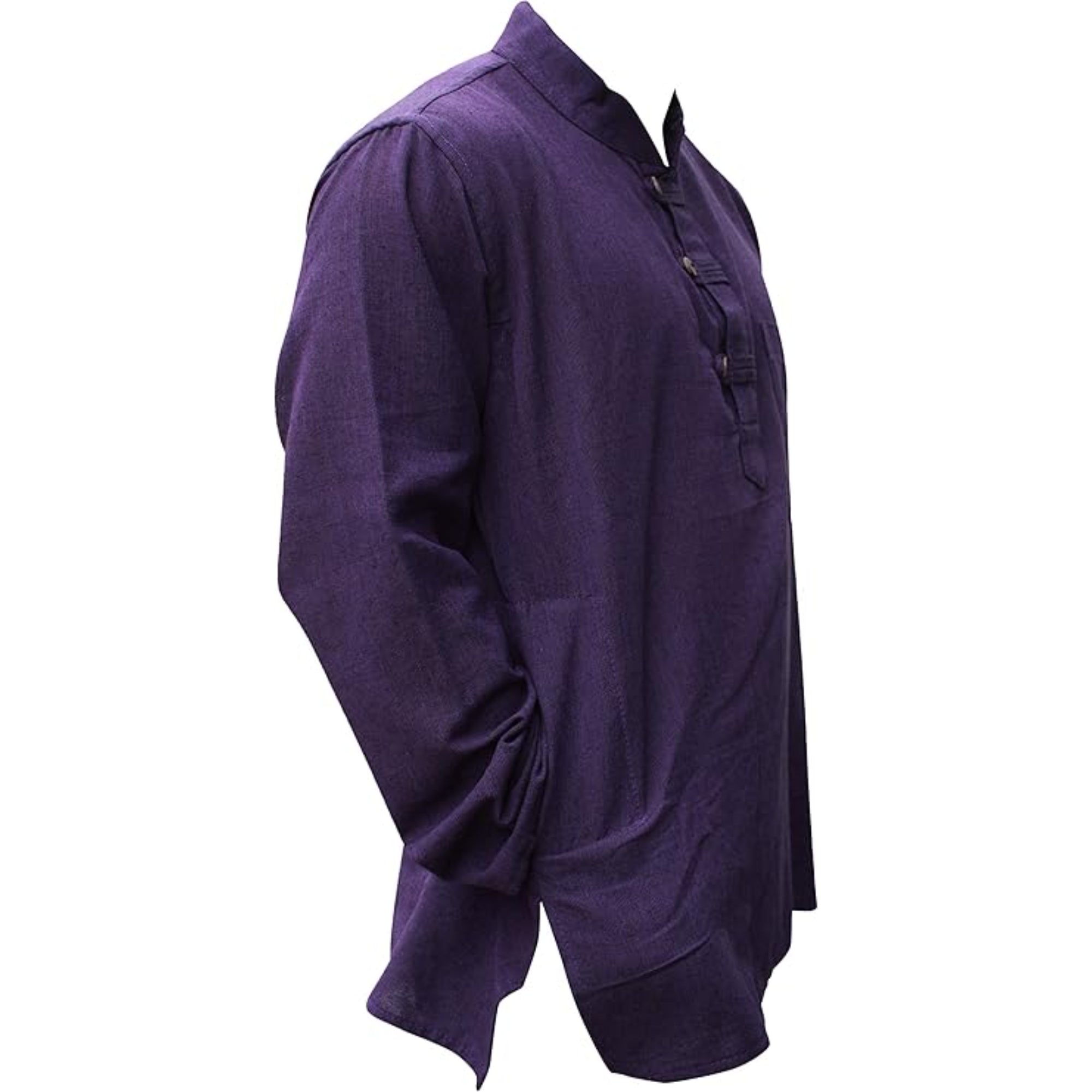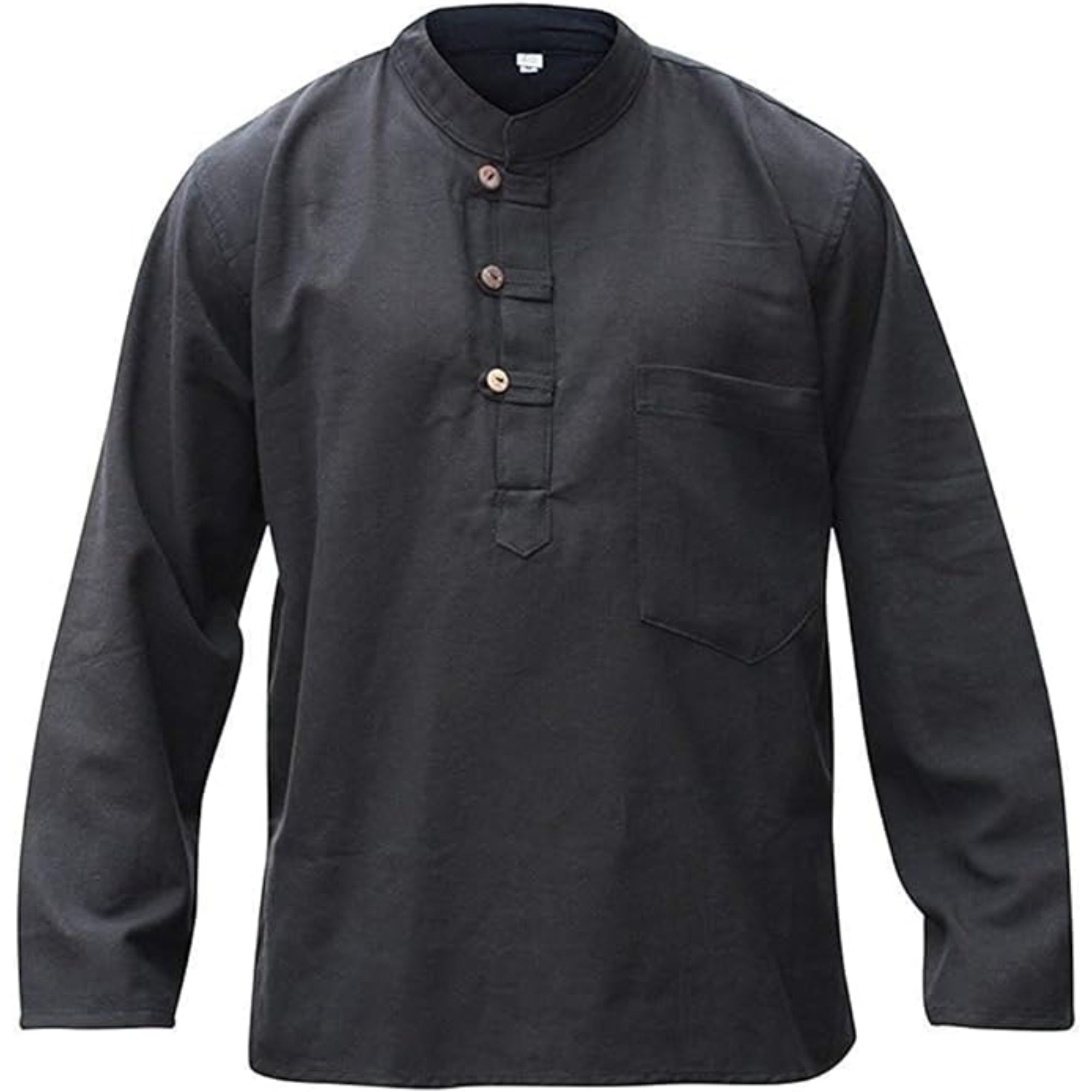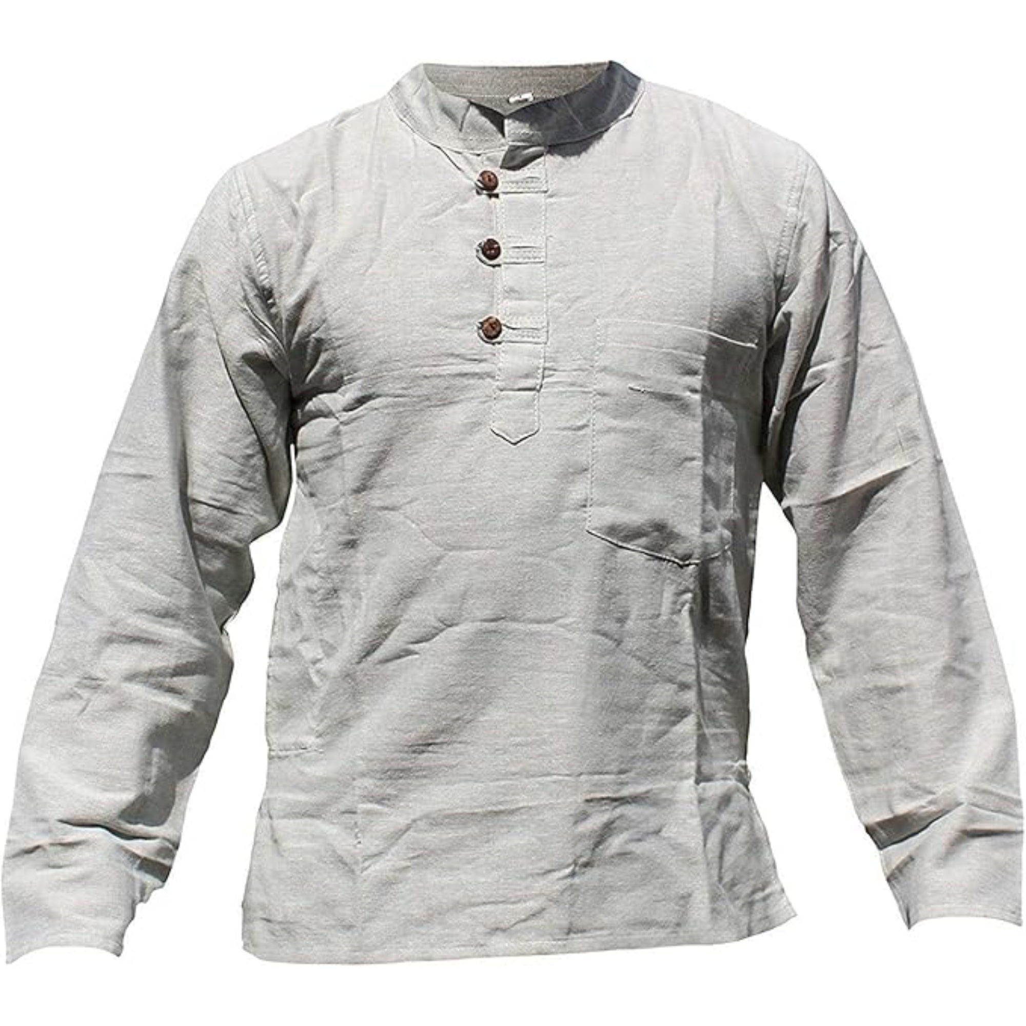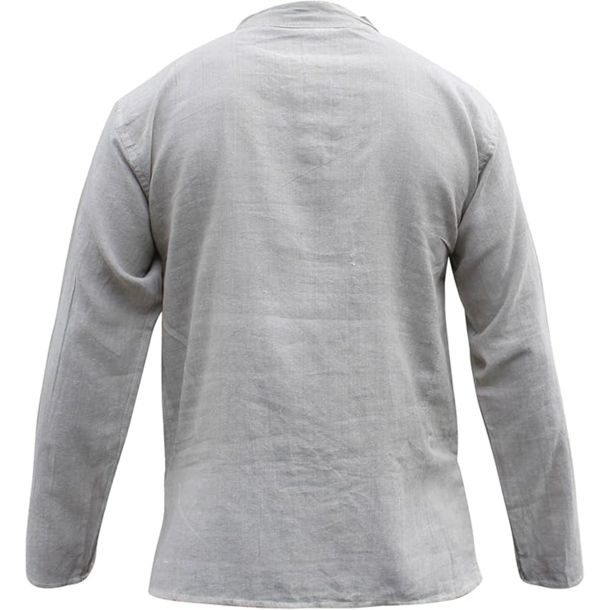 Our handmade Hemp Fabric Grandad Shirt – the perfect addition to your wardrobe for a timeless blend of style and functionality. Crafted from premium hemp fabric, this shirt offers a unique combination of sun protection and odour resistance, making it an essential choice for the modern man, providing comfort during hot summer days while keeping you cosy in the winter. With its plain design and light colour, this top is a versatile option suitable for any occasion, offering comfort and effortless style. The band collar and short slits not only enhance its aesthetic appeal but also ensure your neck and hips stay comfortable throughout the day. The long sleeves of this men's long-sleeve top not only add a fashionable touch but also protect it from the sun's rays, making it ideal for outdoor activities. Our grandad collar shirt also features concealed side and chest pockets, offering both style and functionality for your convenience. Elevate your wardrobe with the ultimate blend of comfort, style, and durability.