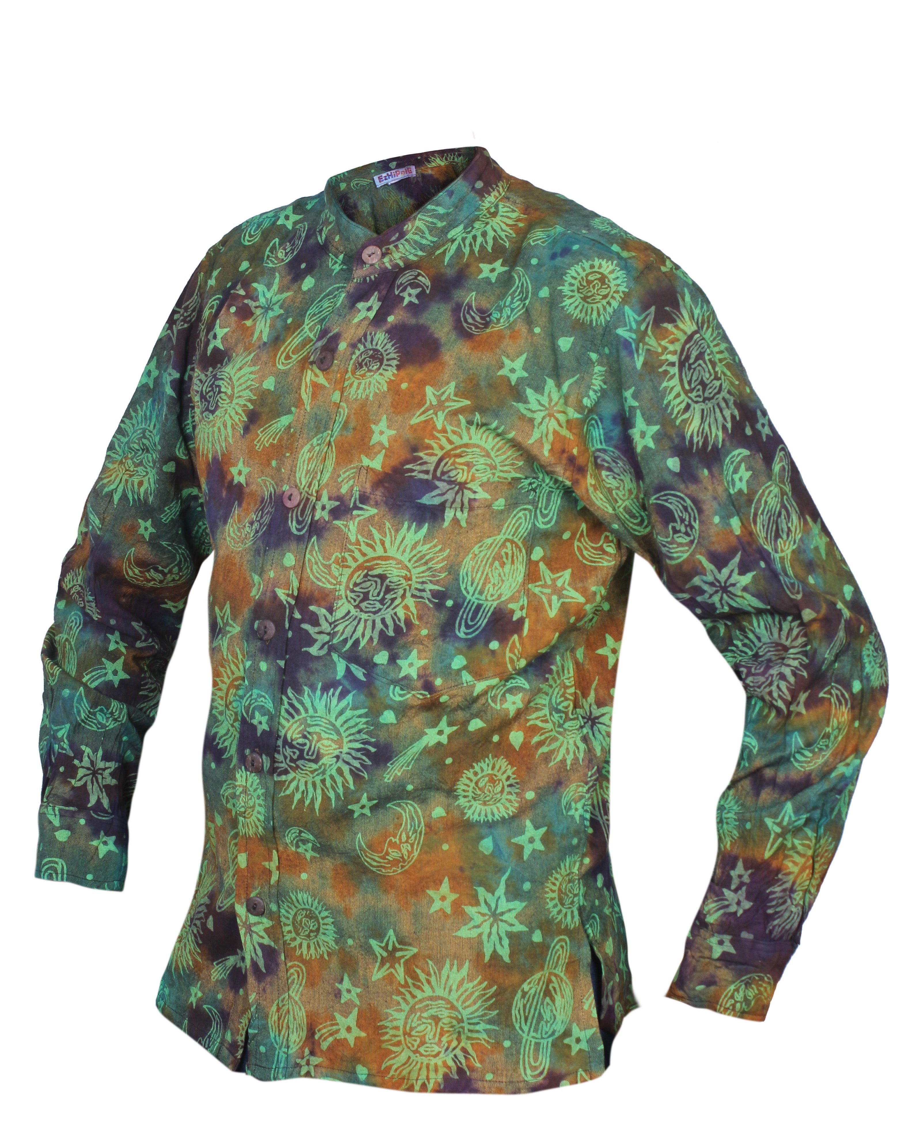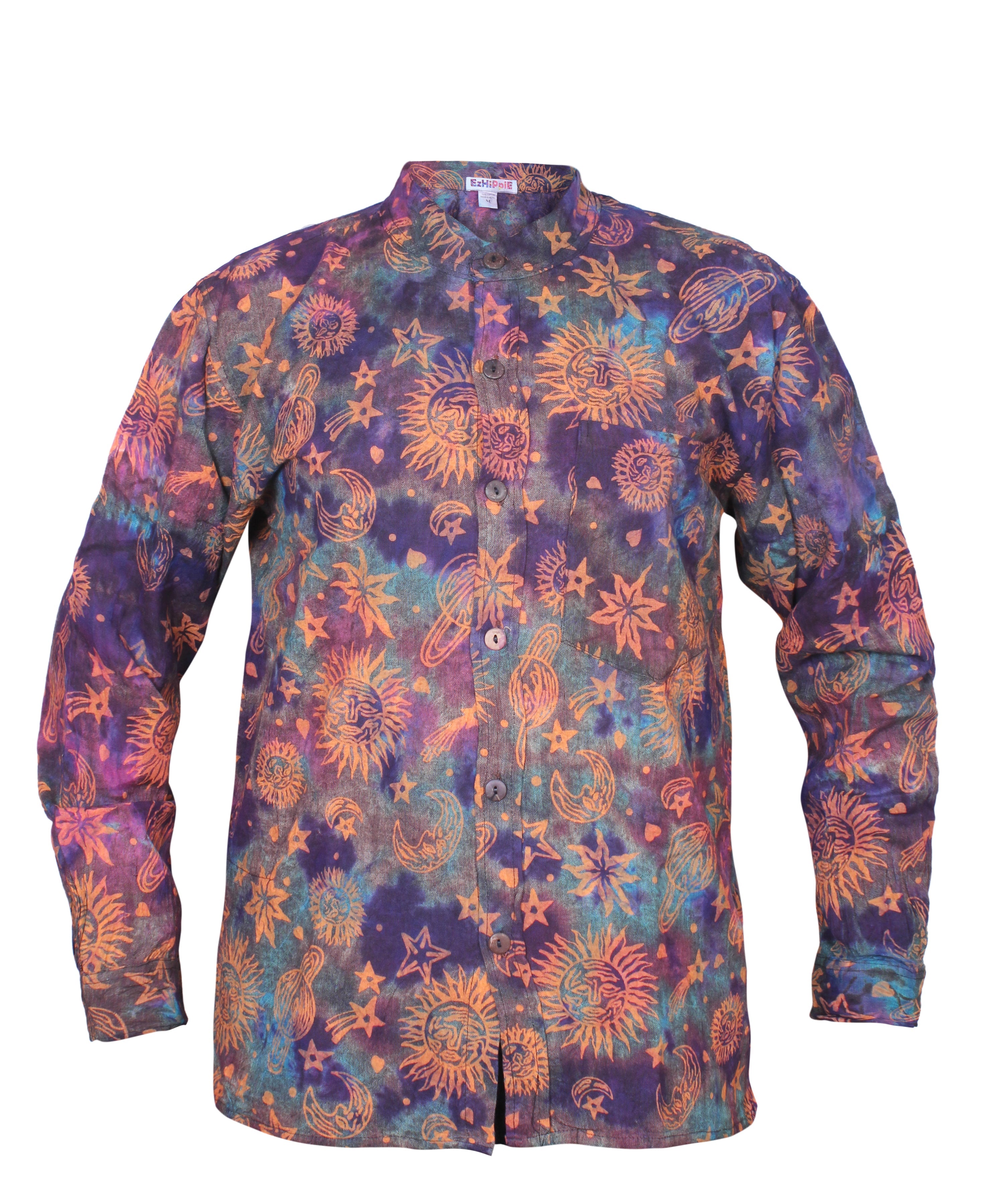 These grandad-style shirts, made from 100% tie-dye cotton, are the perfect choice for warm climates. Designed with a casual yet stylish look, they feature a collarless grandad-style neckline with three buttons at the top. Despite being long-sleeved, the lightweight fabric makes them ideal for summer or holiday wear. The vibrant tie-dye patterns offer a unique and eye-catching appeal, ensuring you stand out effortlessly. Handmade in Nepal, each shirt is crafted with care and is part of our fair trade collection, offering a stylish option for lounging or casual outings.