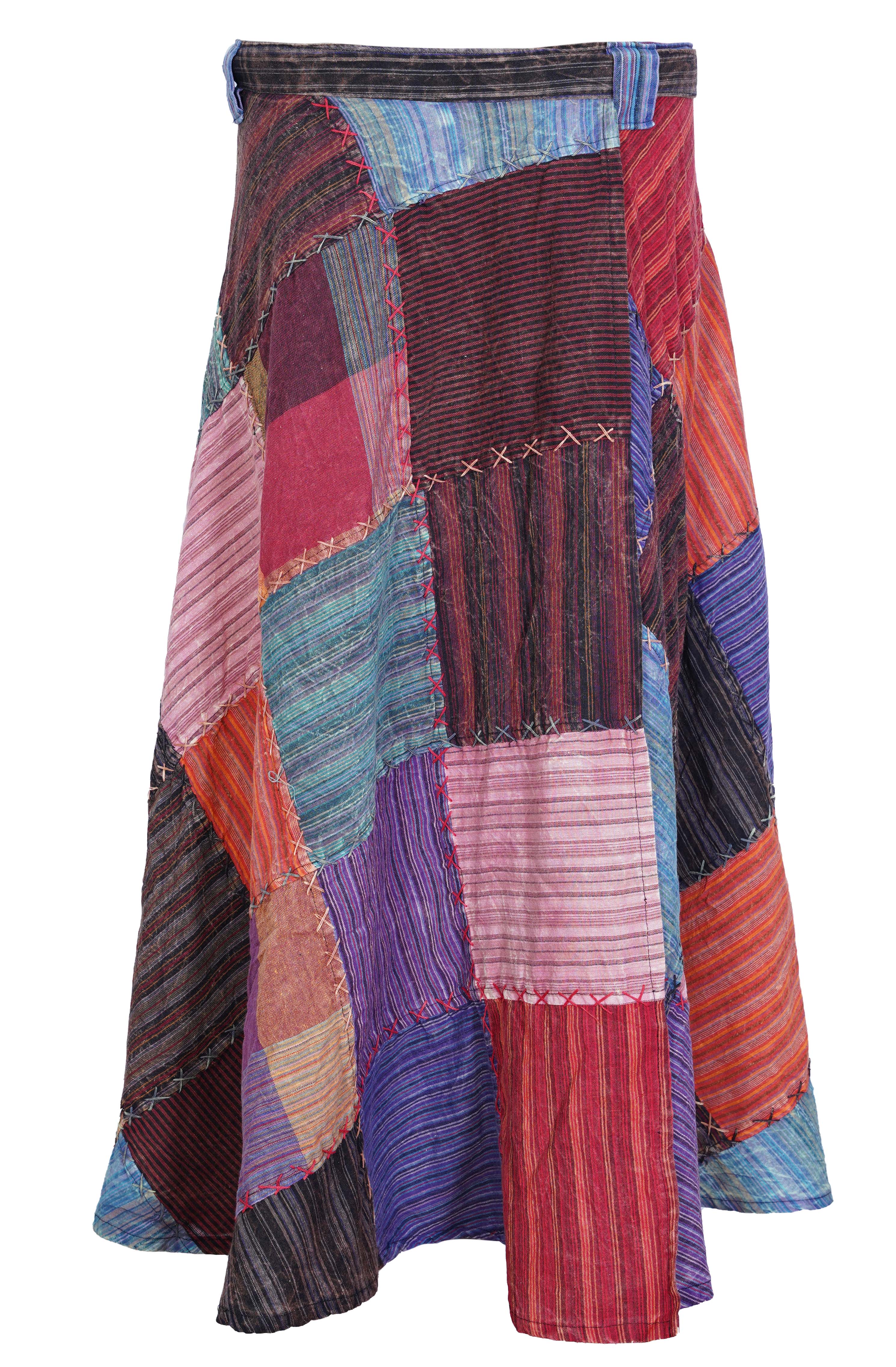 Shopoholic Fashion Wrapped Round Hippie Solid Patchwork Boho Long Skirt