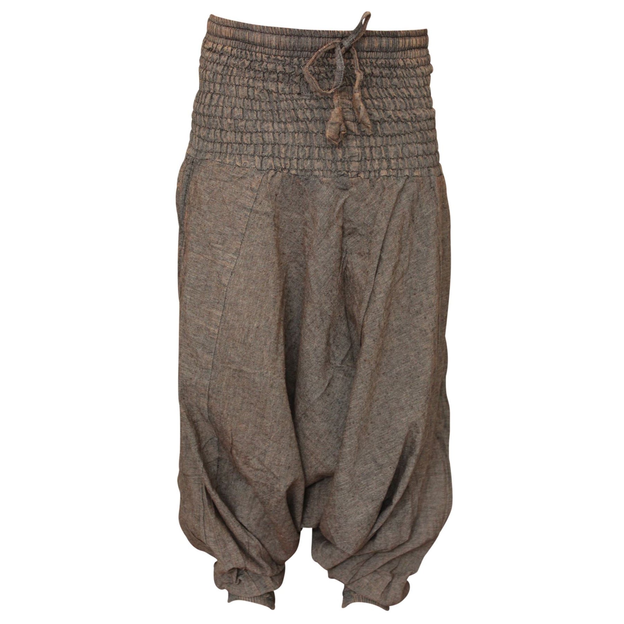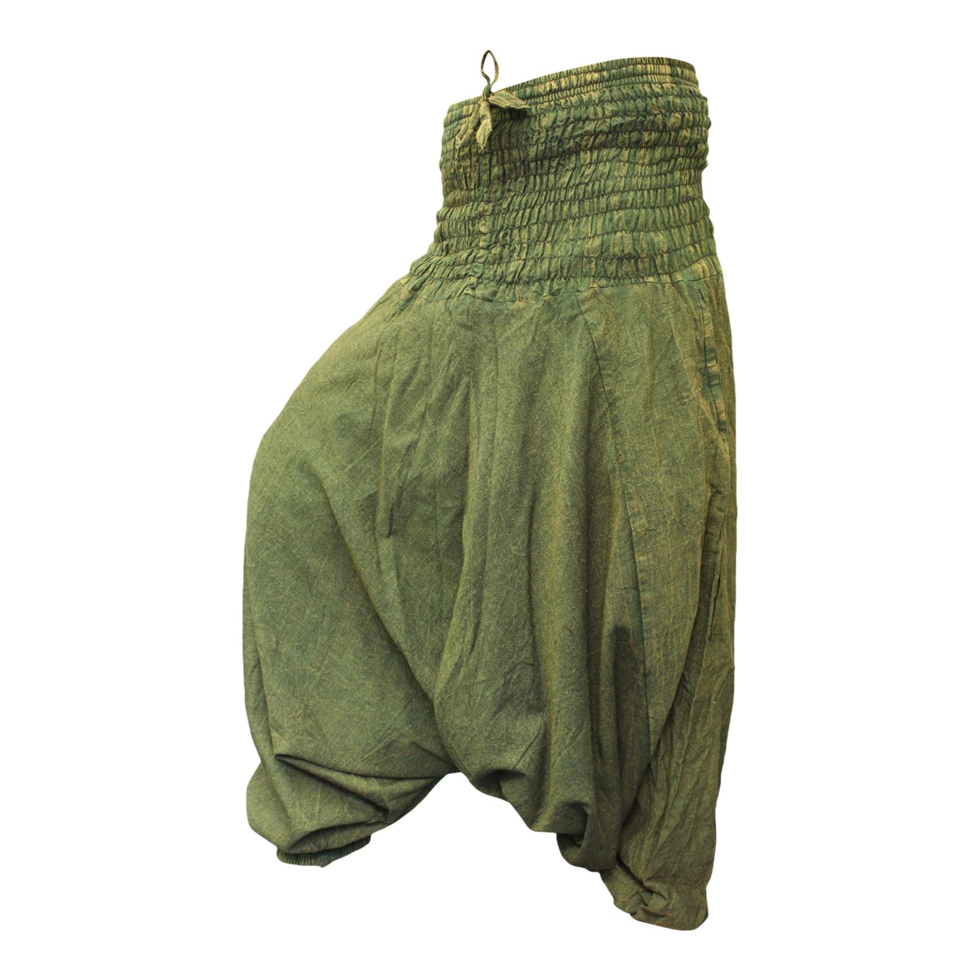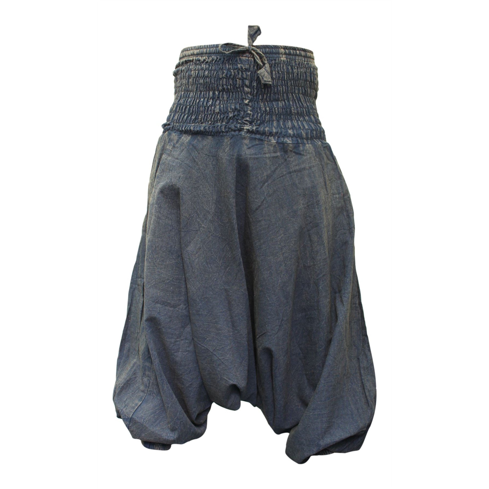 These superb trousers are perfect for festivals, holidays, or casual wear. Made from light cotton with an elasticated waist and ankles, they offer a comfortable loose fit. They pair well with summer t-shirts, tops, camis, and even jackets in winter. Unlike average harem trousers, they feature a unique stonewash effect. Lightweight and versatile, they're ideal for summer, spring, and autumn.