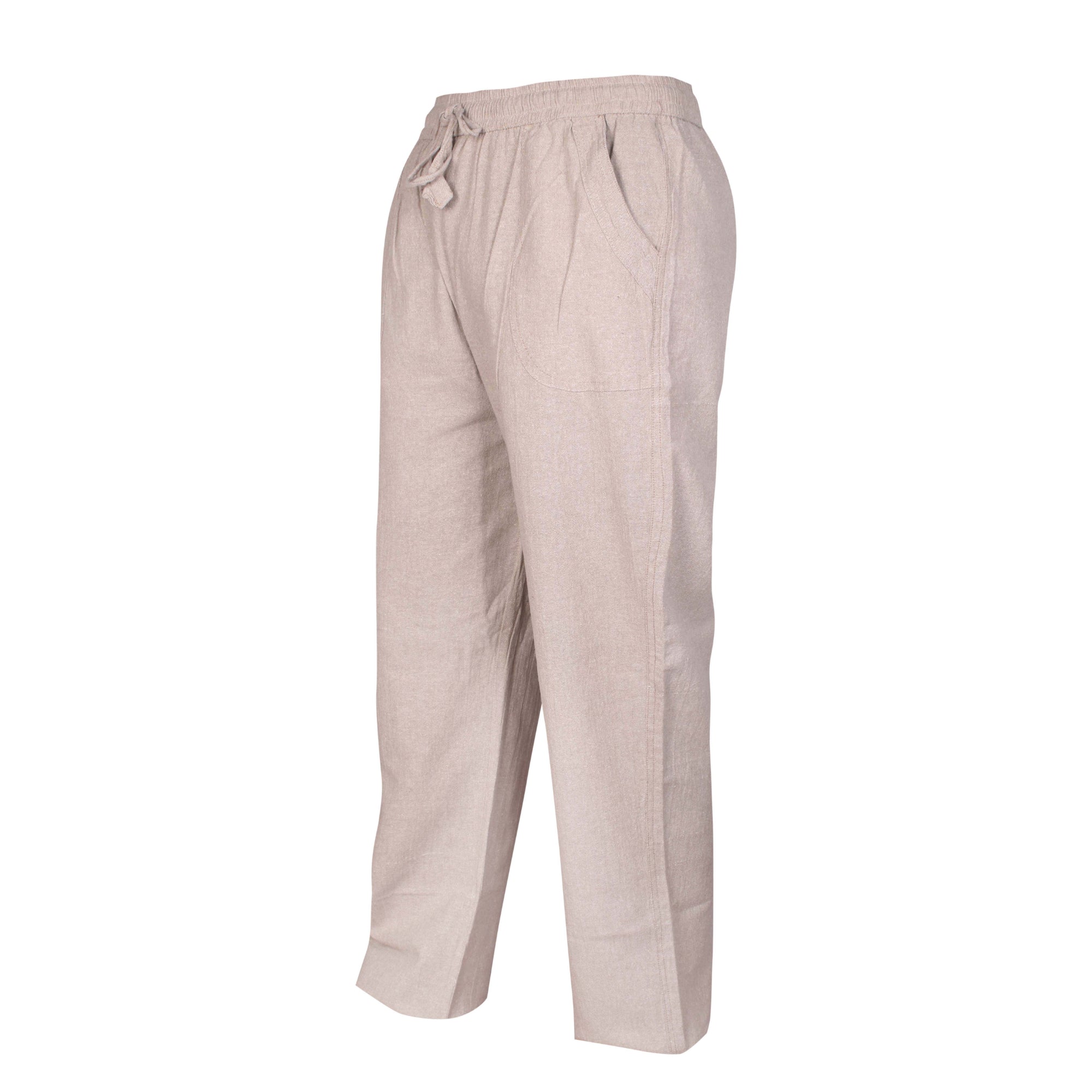 Our Women's Trousers designed for ultimate comfort and versatility. Made from premium cotton, these trousers are perfect for all-day wear. The elastic waistband and drawstring closure ensure a snug, adjustable fit for every body type. With two spacious pockets, you can conveniently carry small essentials. Featuring light-colored fabric and classic design, these trousers effortlessly elevate any outfit. Their strong knitted construction makes them ideal for yoga, jogging, exercise, or simply lounging around.